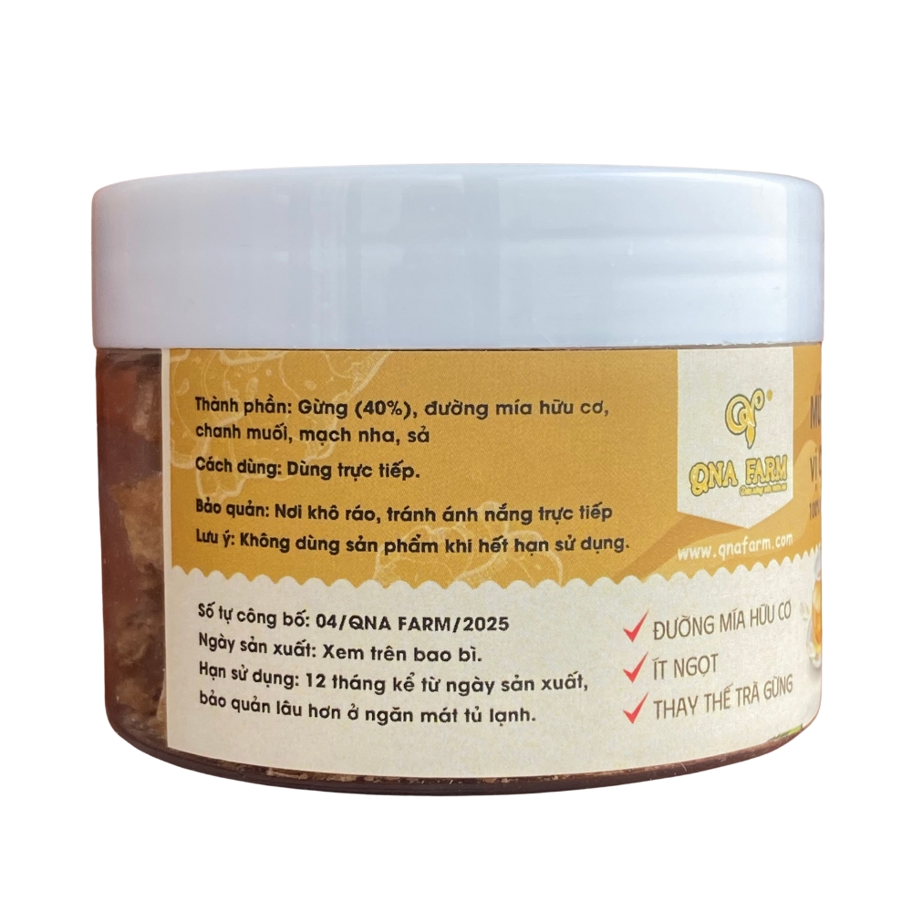 Thành phần: Gừng sẻ núi (40%), chanh muối, sả tươi, đường mía hữu cơ, mạch nha.