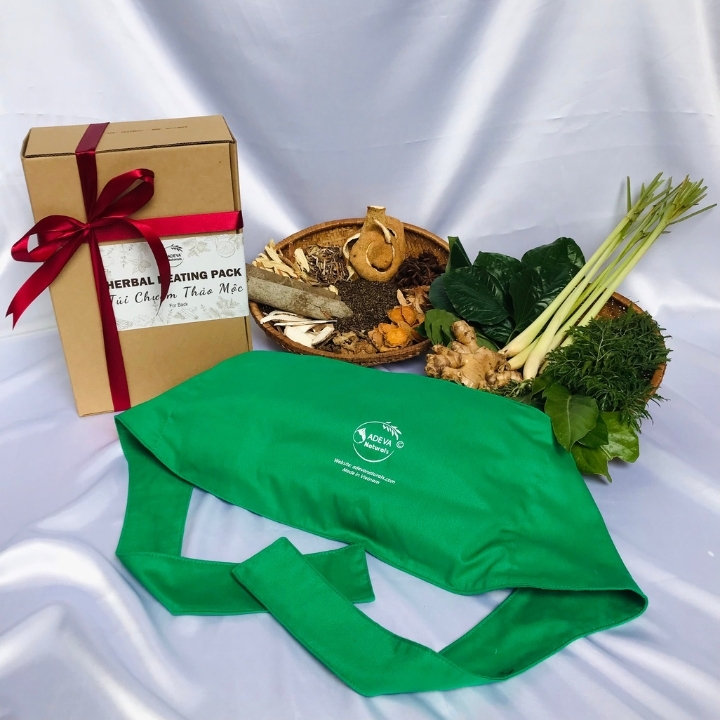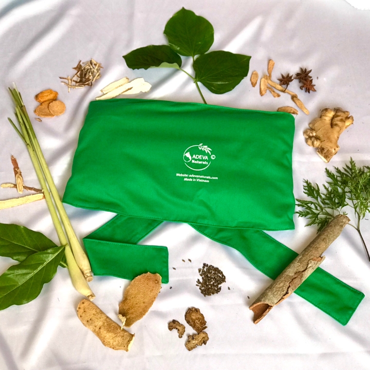 – Thành phần Túi chườm thảo dược ADEVA được nghiên cứu và tạo ra từ 100% thảo mộc tự nhiên truyền thống được sử dụng từ lâu đời như: Quyết minh tử, Lá Nhàu, Ngải cứu, gừng, nghệ, xuyên khung, Sả, Vỏ bưởi… giúp đả thông kinh mạch, giải trừ đau mỏi, thư giãn tinh thần.